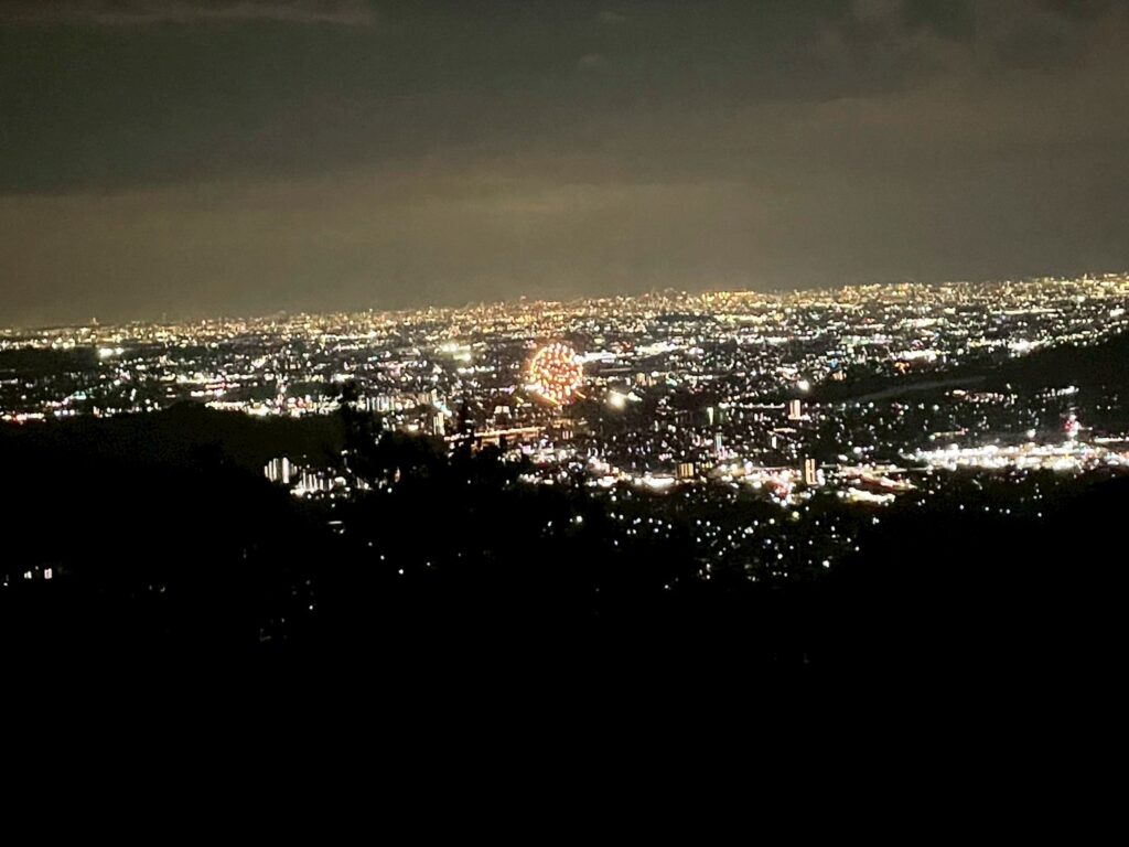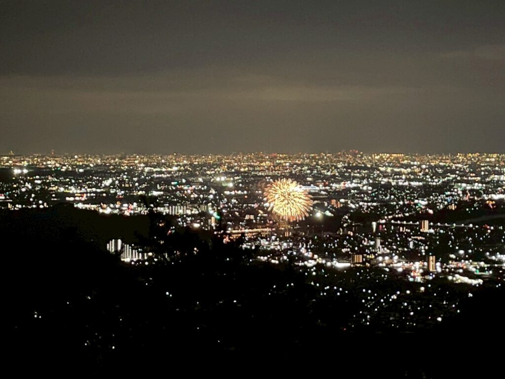 山頂は涼しく犬山だけでなく、関、美濃加茂の花火🎆も打ち上がり、美しい夜と