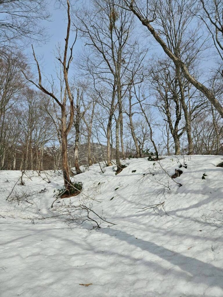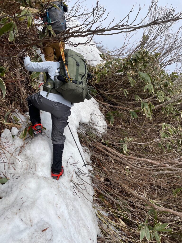 雪上を歩けるようになったが、ルートミスでまたヤブ漕ぎ。