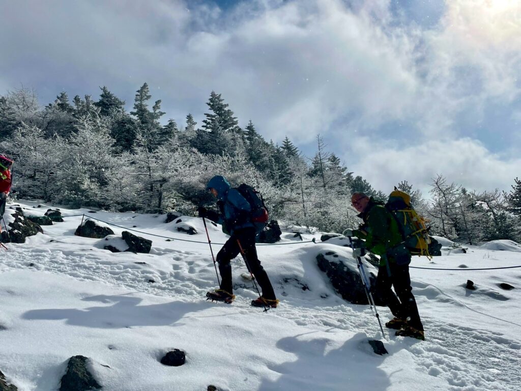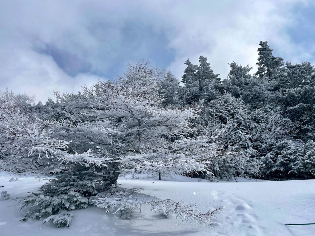 天気予報は荒天だが、ホテル予約しており登山口まで行くだけ行ってみることに。 予報に反する天気でピーカンではありませんが、太陽の日差しあり!ならば黒斑山に向けて出発!寒波到来中とはいえ人の多さにビックリです。トーミの頭・黒斑山山頂での写真は順番待ちの行列でした。 トーミの頭に近づくにつれガッスガス! ガトーショコラとの写真は諦めながら黒斑山へ向かいます。 ですが、なんとなんと徐々にガスがキレ始めて念願のガトーショコラとの写真がバッチリ撮れました! そして黒斑山山頂もふめました。なお、 翌日の四阿山は天候不良により中止としました。